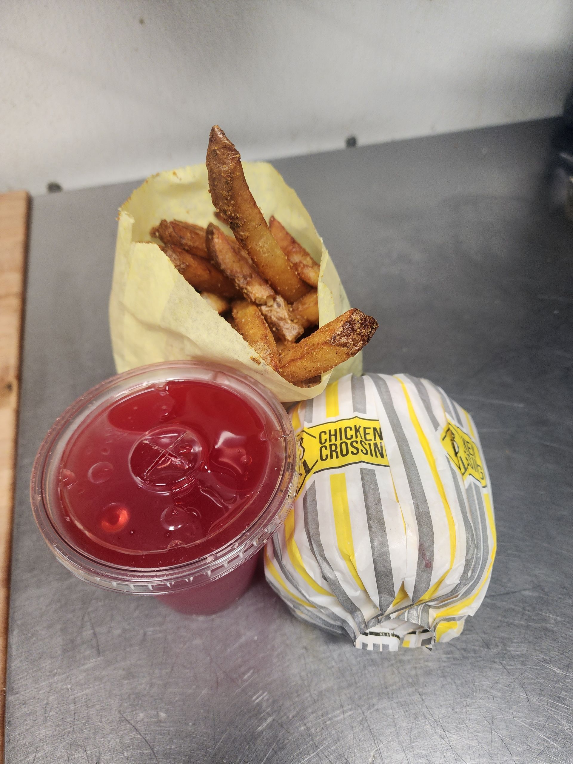 Our menu offers a variety of thoughtfully prepared, fast-food staples anchored by our Fried Chicken Sandwich and Vegan Fried Sandwich, which appeared on Food Network's "Diners, Drive-ins and Dives!" Our Crossing Sauce will be available for purchase as soon as we're able, and we'll always provide condiments that are either made in-house, or sourced as close to our business as possible. And as our business grows, our menu options will be able to expand as well.